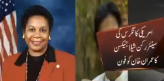 امریکی کانگریس کی سنئیر رکن شیلا جیکسن کا چئیرمین تحریک انصاف...