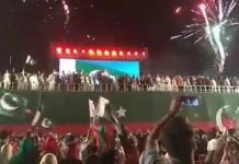 Fireworks at PTI Jalsa in Gulshan-e-Iqbal