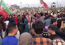 پنڈال میں موجود پارٹی ترانے پر رخص پنڈال میں موجود پارٹی...