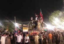 لاہور پنڈال عوام سے کھچا کھچ بھرا ہوا ۔ ہر طرف پارٹی پرچموں کی بہار